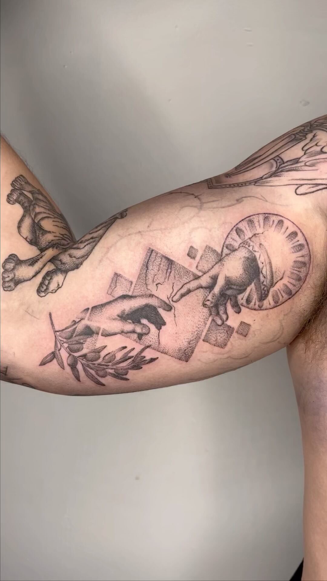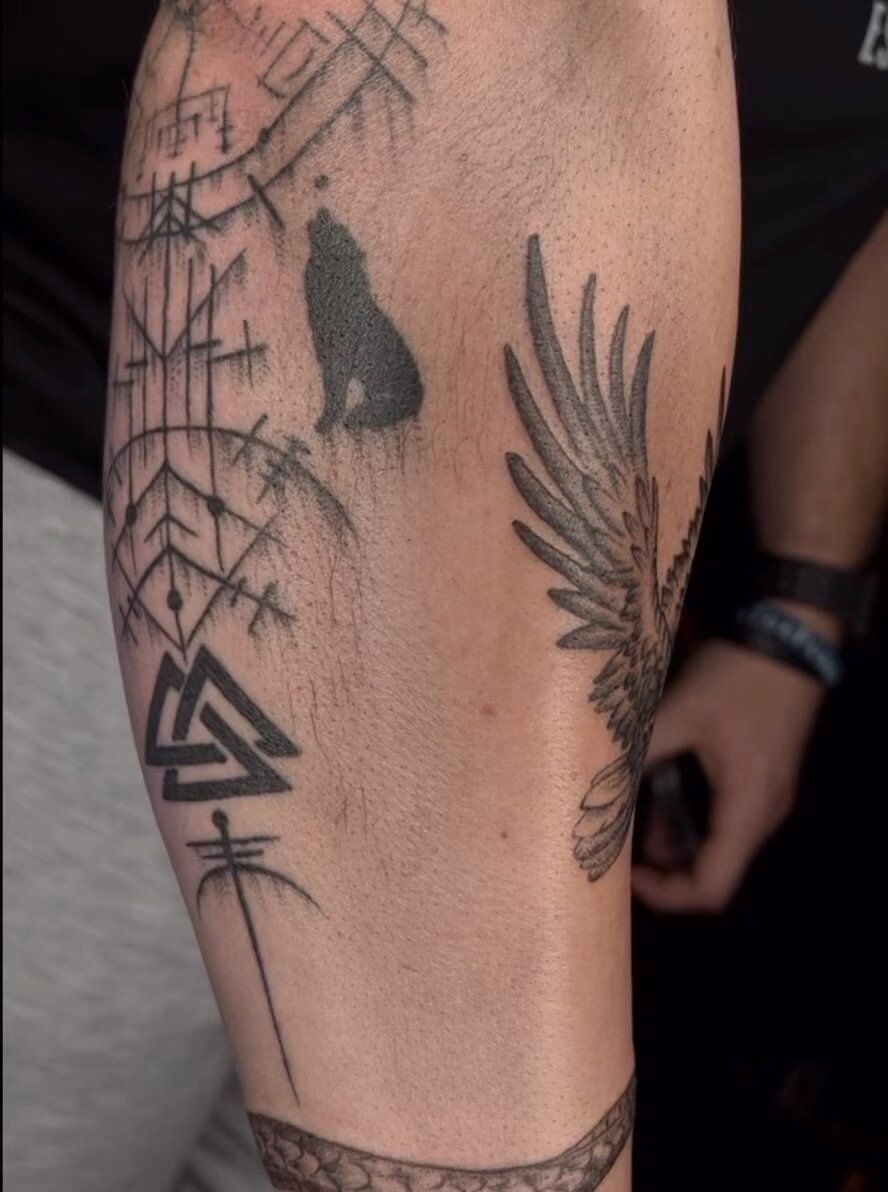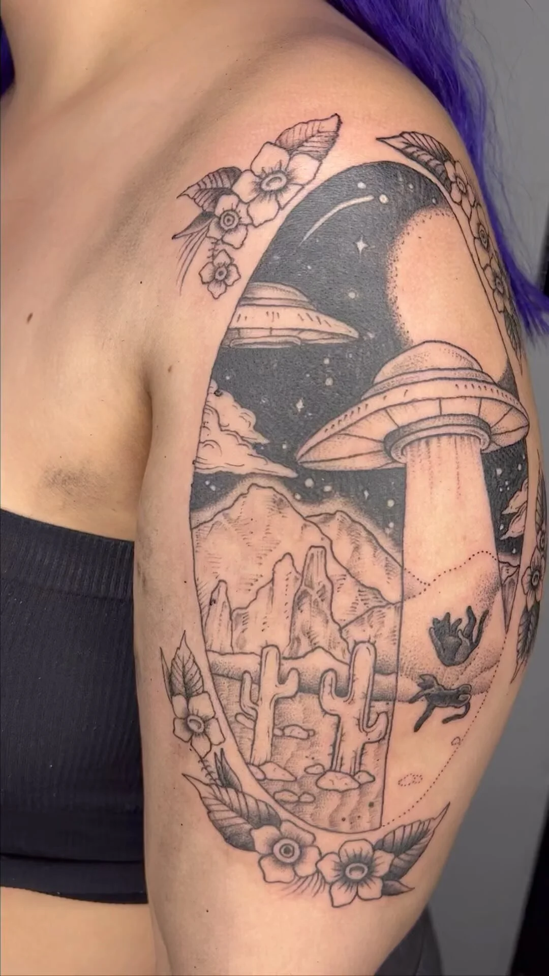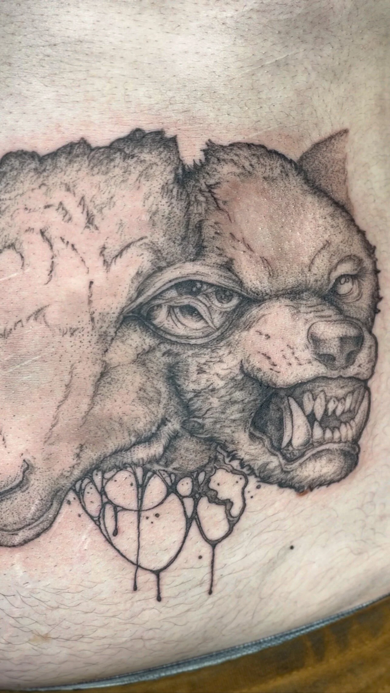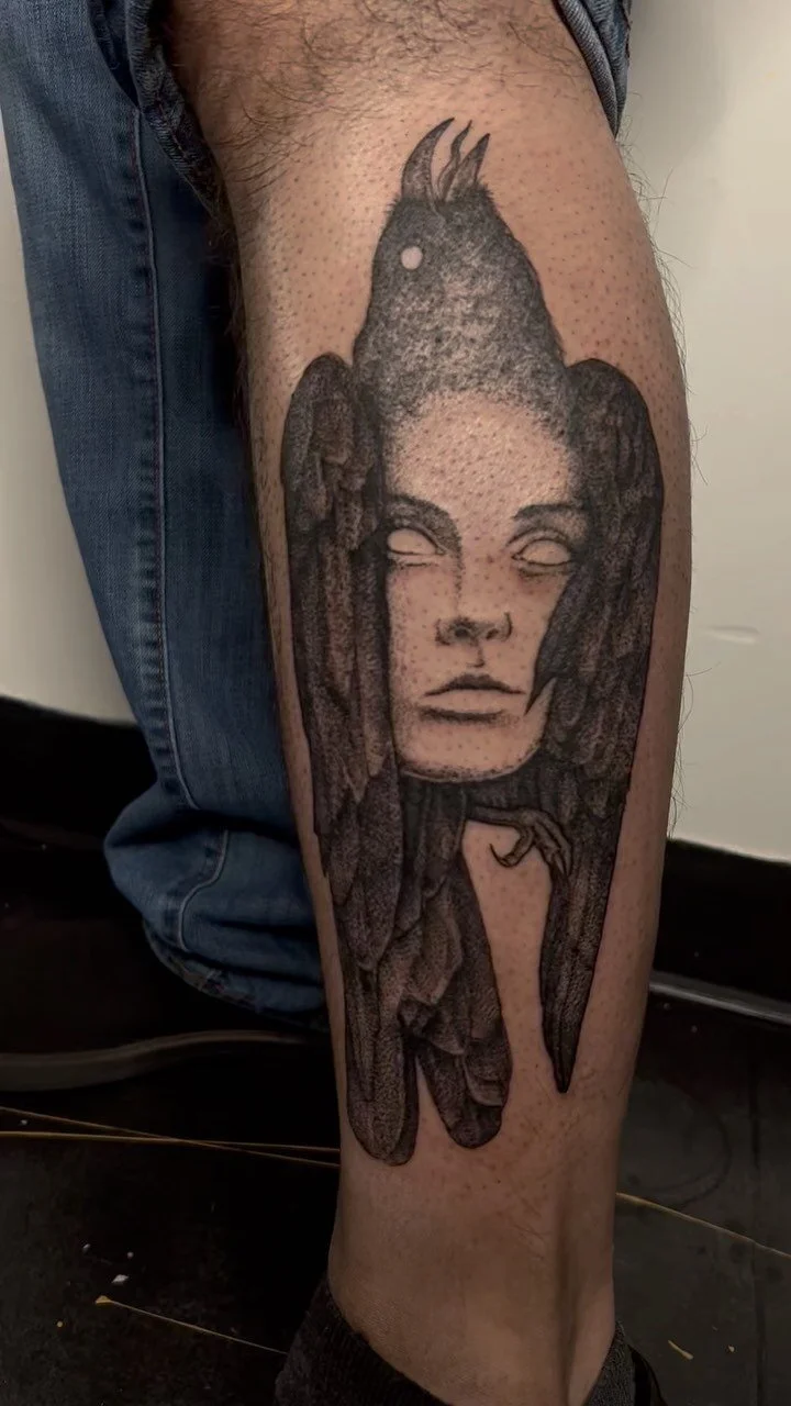 My goal is to create a welcoming space that my clients feel free to express themselves in a environment where they wonโt be judged. I typically work with black and grey with whip/stipple shading. While I do work with many different styles, I really enjoy tattooing the strange and weird.